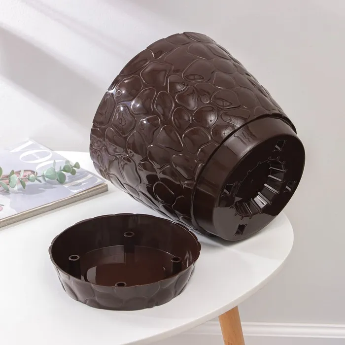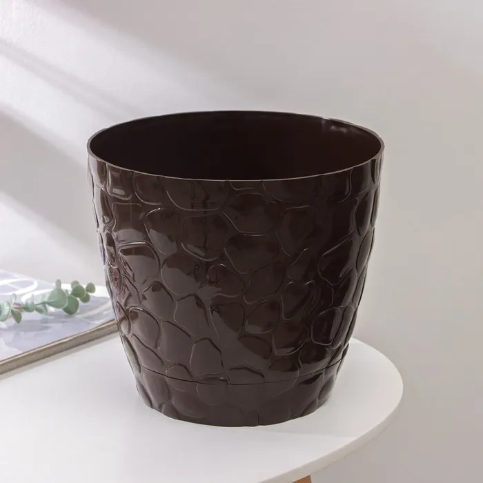 Горшок для цветов с поддоном «Камешки», 8 л, пластик, шоколадный — Характеристики