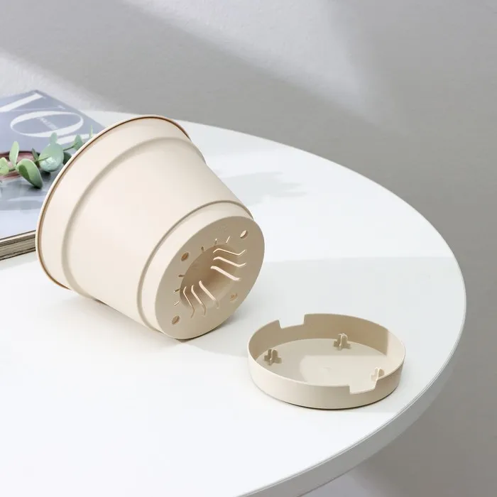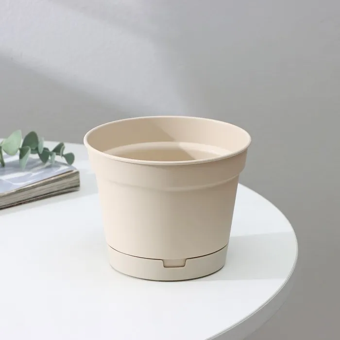 Горшок для цветов с поддоном Mint, 700 мл, d=12 см, h=9.4 см, пластиковый, светло-бежевый — Характеристики