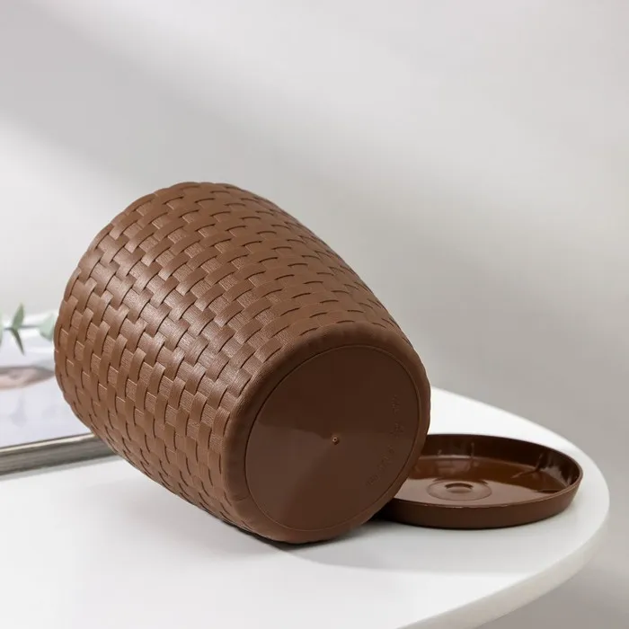 Горшок для цветов с поддоном «Петропласт. Ротанг», 1.2 л, пластиковый, тёмно-коричневый