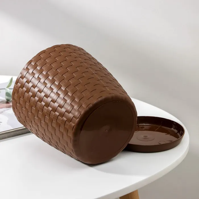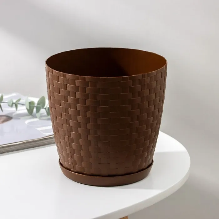 Горшок для цветов с поддоном «Петропласт. Ротанг», 2 л, пластиковый, тёмно-коричневый