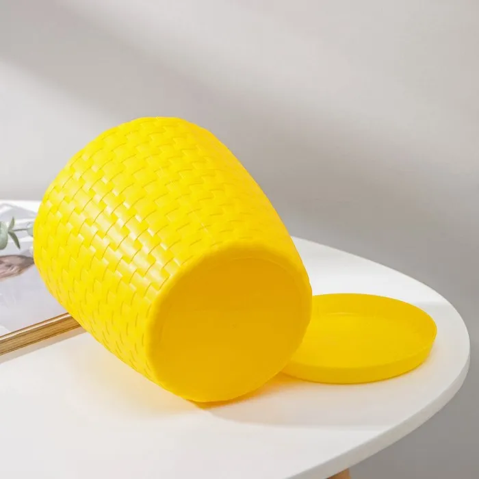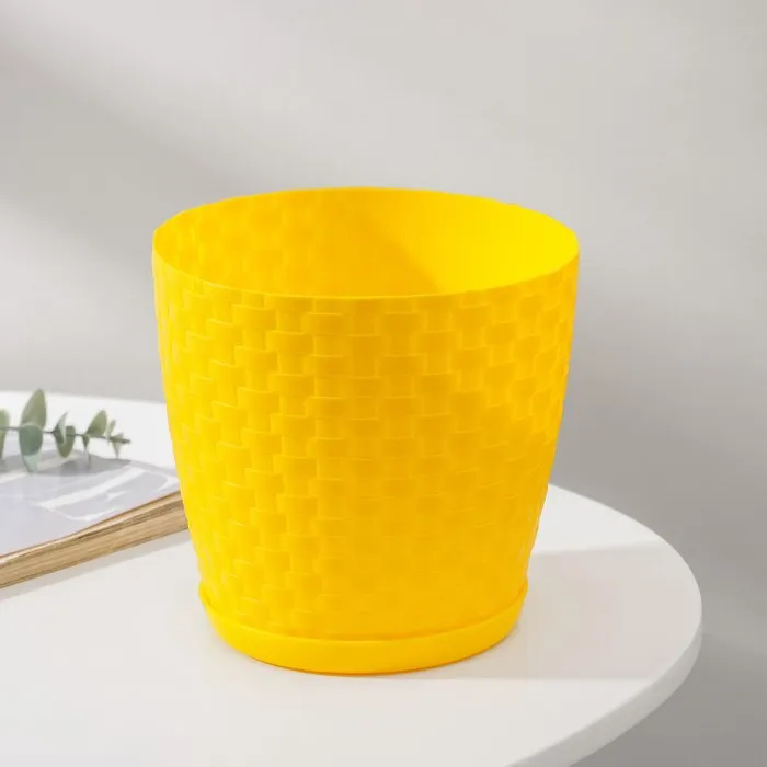 Горшок для цветов с поддоном «Ротанг», 2 л, пластиковый, жёлтый — Характеристики