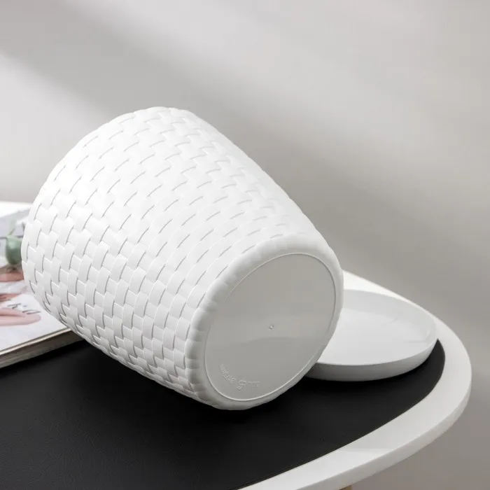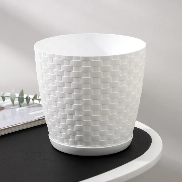 Горшок для цветов с поддоном «Ротанг», 3 л, пластиковый, белый