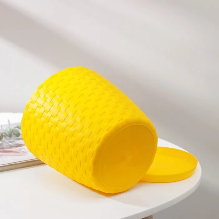 Горшок для цветов с поддоном «Ротанг», 3 л, пластиковый, жёлтый