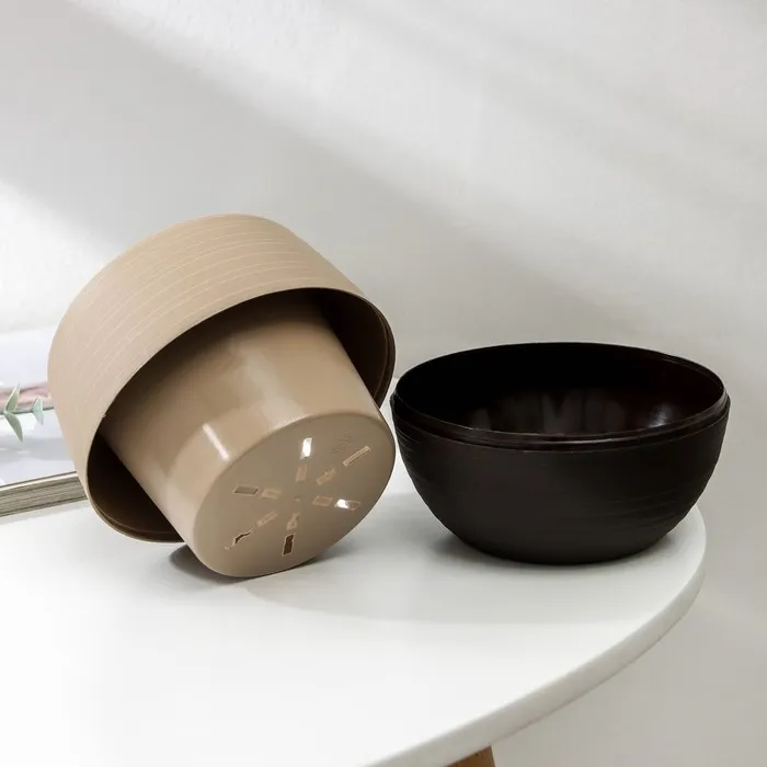 Горшок для цветов с поддоном СибПолимер «Дуэт», 500 мл, пластиковый, шоколадный-кофе с молоком — Характеристики