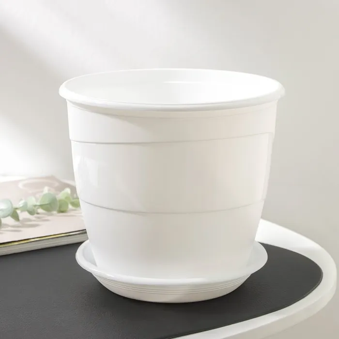 Горшок для цветов с поддоном «Венеция», 3.1 л, d=19 см, пластик, белый