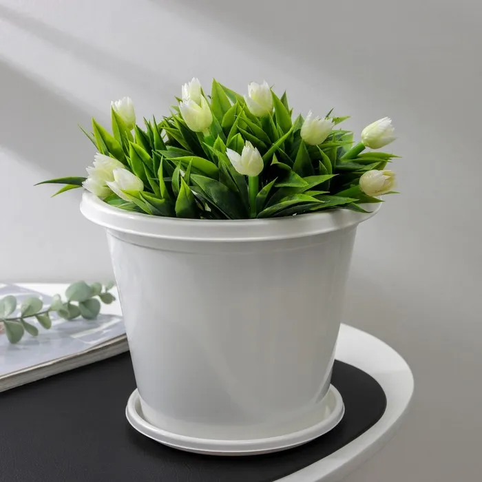 Горшок для цветов с поддоном «Венеция», 3.1 л, d=19 см, пластик, белый — Характеристики