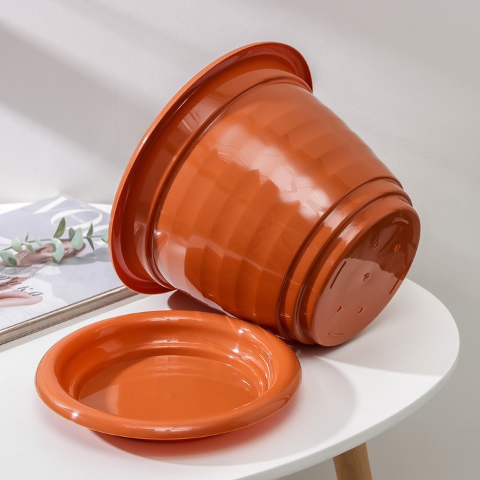 Горшок для цветов с поддоном «Виола», 5 л, пластиковый, коричневый
