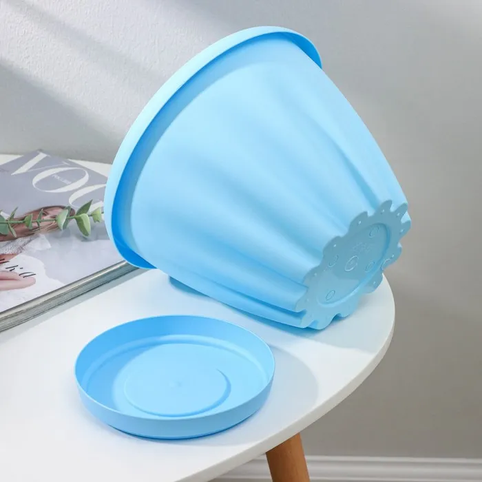 Горшок для цветов с поддоном «Знатный», 3,9 л, d=22,5 см, голубой