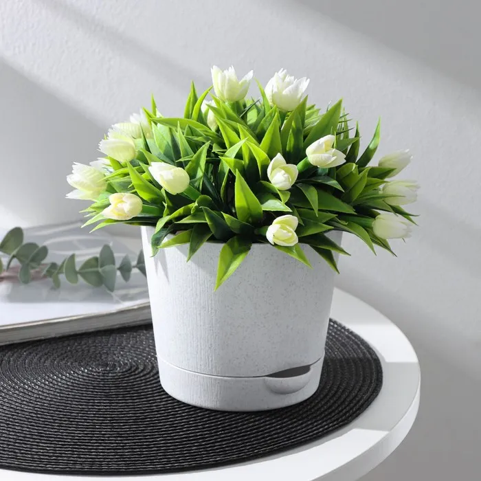 Горшок для цветов с прикорневым поливом «Альянс», 1 л, d=13 см, h=12 см, пластиковый, цвет мрамор — Характеристики