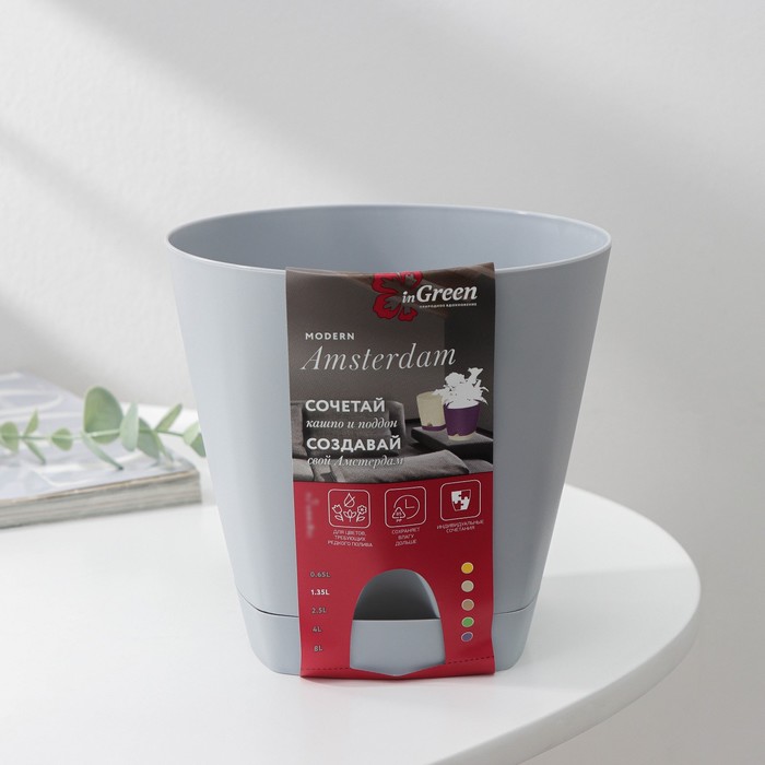 Горшок для цветов с прикорневым поливом Amsterdam, 1.35 л, d=14 см, h=13 см, серый — Характеристики