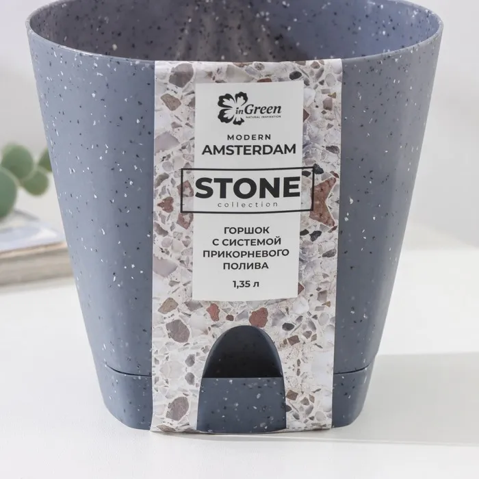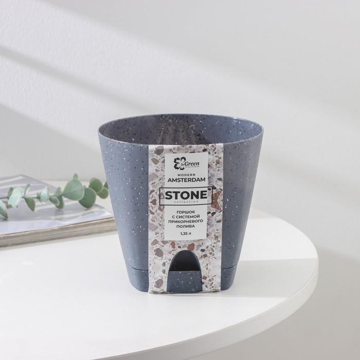 Горшок для цветов с прикорневым поливом «Amsterdam», 1,35 л, d=14 см, темный камень — Характеристики