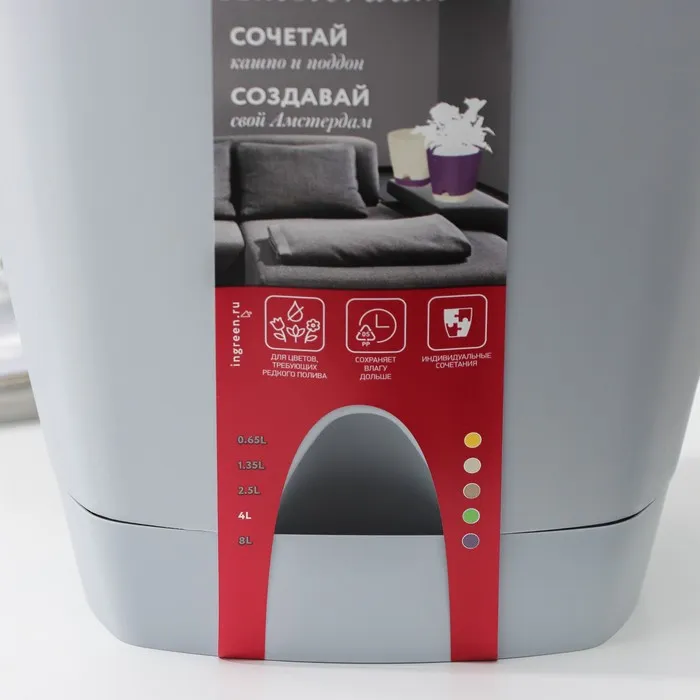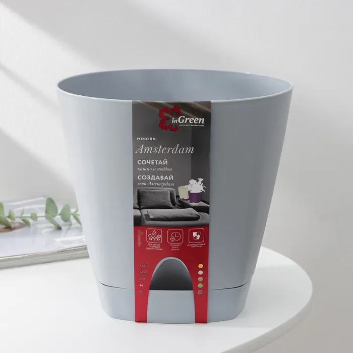 Горшок для цветов с прикорневым поливом Amsterdam, 4 л, d=20 см, h=19 см, серый — Характеристики