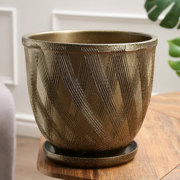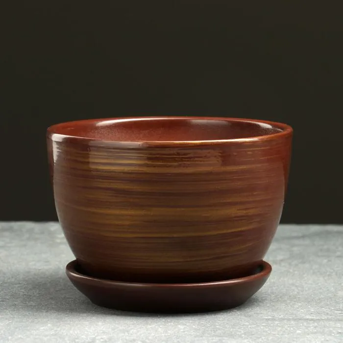 Горшок для цветов «Саванна», 750 мл, d=14 см, h=10 см, керамика, с поддоном, коричневый — Характеристики