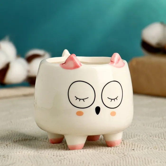 Горшок для цветов «Счастливый Совёнок» керамический, 200 мл, 8×8×8 см, на ножках, белый — Характеристики