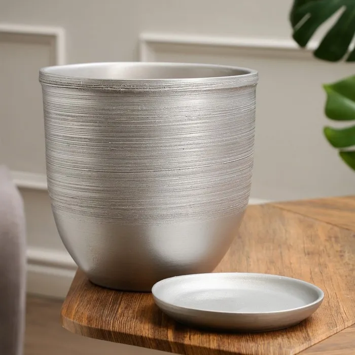 Горшок для цветов «Серебро», керамический, с поддоном, 5 л, серебристый — Характеристики