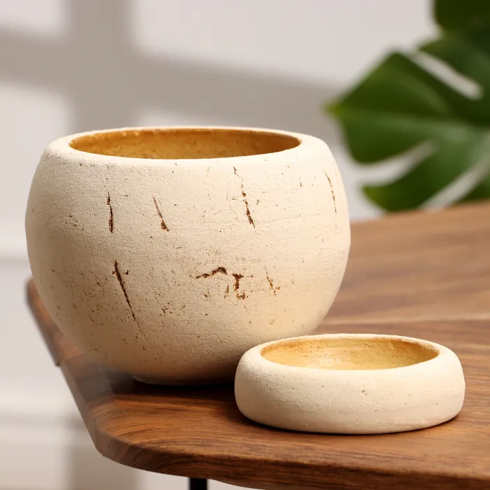 Горшок для цветов «Шар микро», керамический, с поддоном, 1.2 л, d=14 см, h=12 см, бежевый — Характеристики