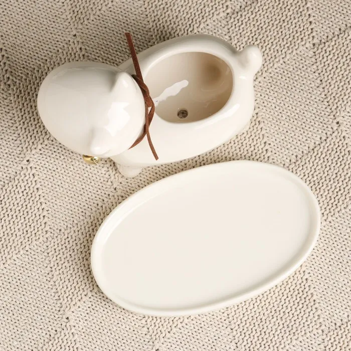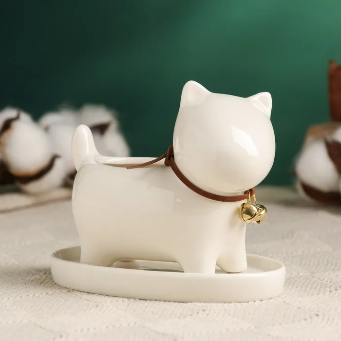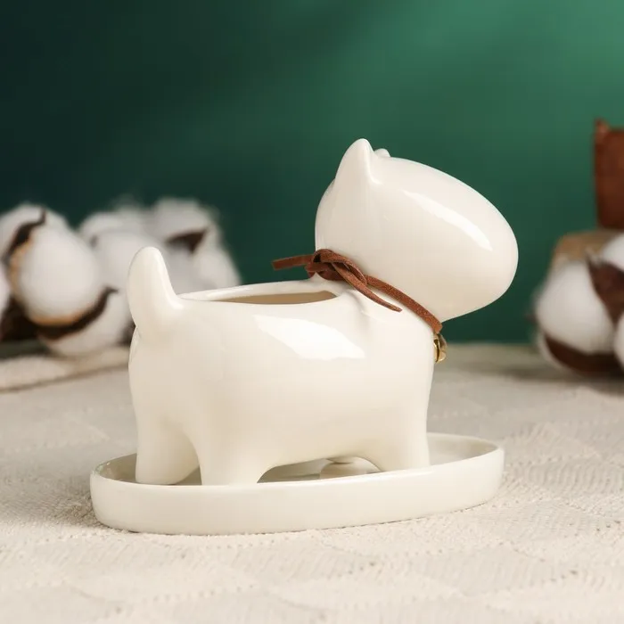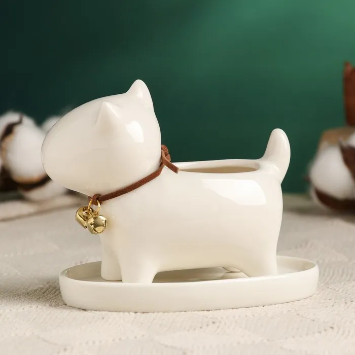 Горшок для цветов «Щенок» керамический, с поддоном, 150 мл, 11×6×9 см, белый — Характеристики