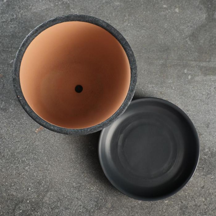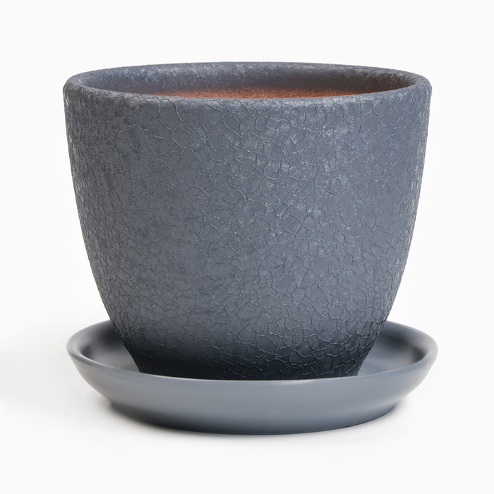 Горшок для цветов «Шёлк», 1 л, d=15 см, h=13 см, керамический, с поддоном, серый