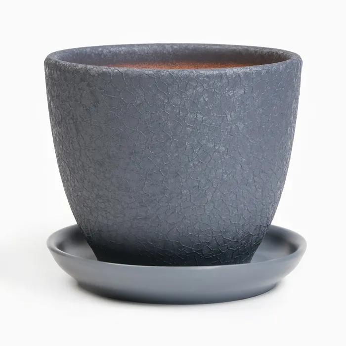 Горшок для цветов «Шёлк», 1 л, d=15 см, h=13 см, керамический, с поддоном, серый — Характеристики