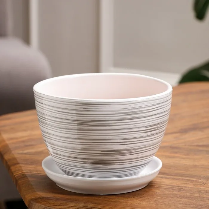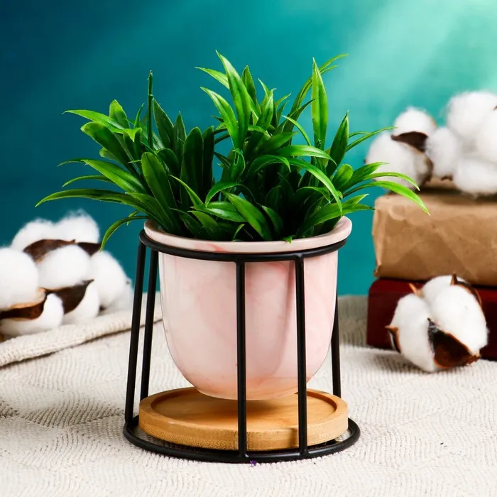 Горшок для цветов «Сосуд», 250 мл, 12×8.5 см, керамика, с поддоном, с подставкой, розовый — Характеристики