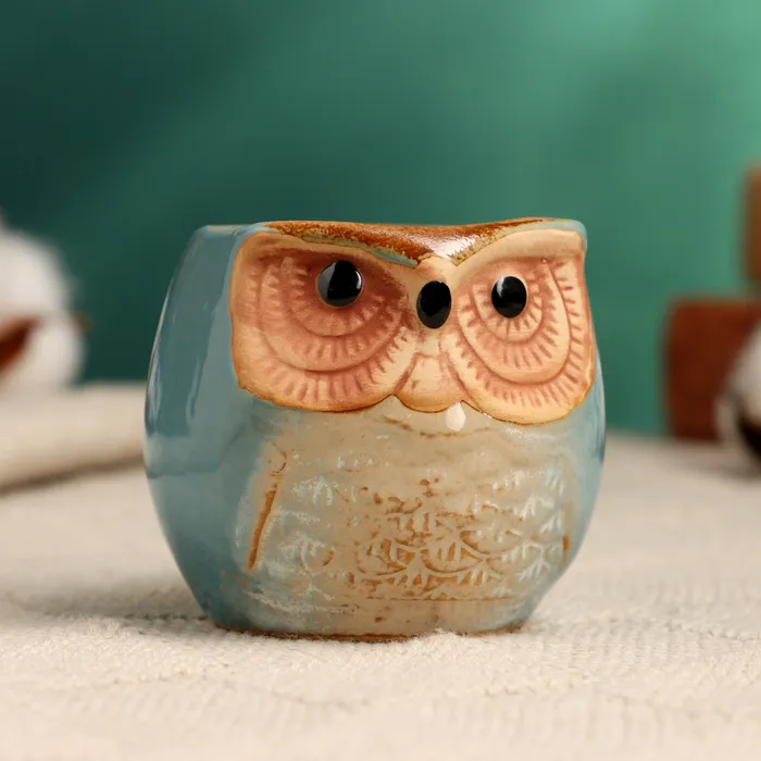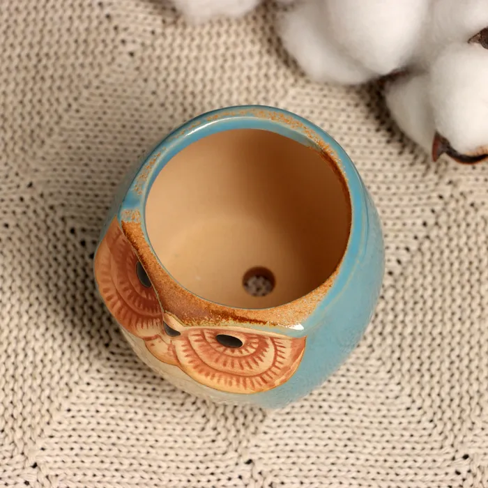 Горшок для цветов «Сова Ава» керамический, 100 мл, 6.5×6.5×6 см, голубой — Характеристики