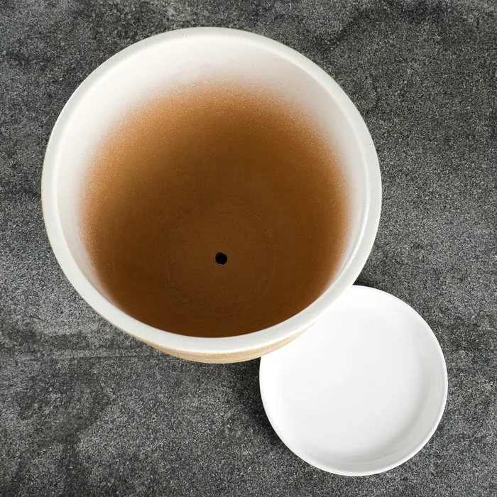Горшок для цветов «Степь», керамический, с поддоном, 5 л, белый с бежевой полосой — Характеристики