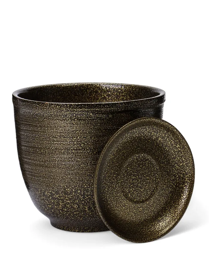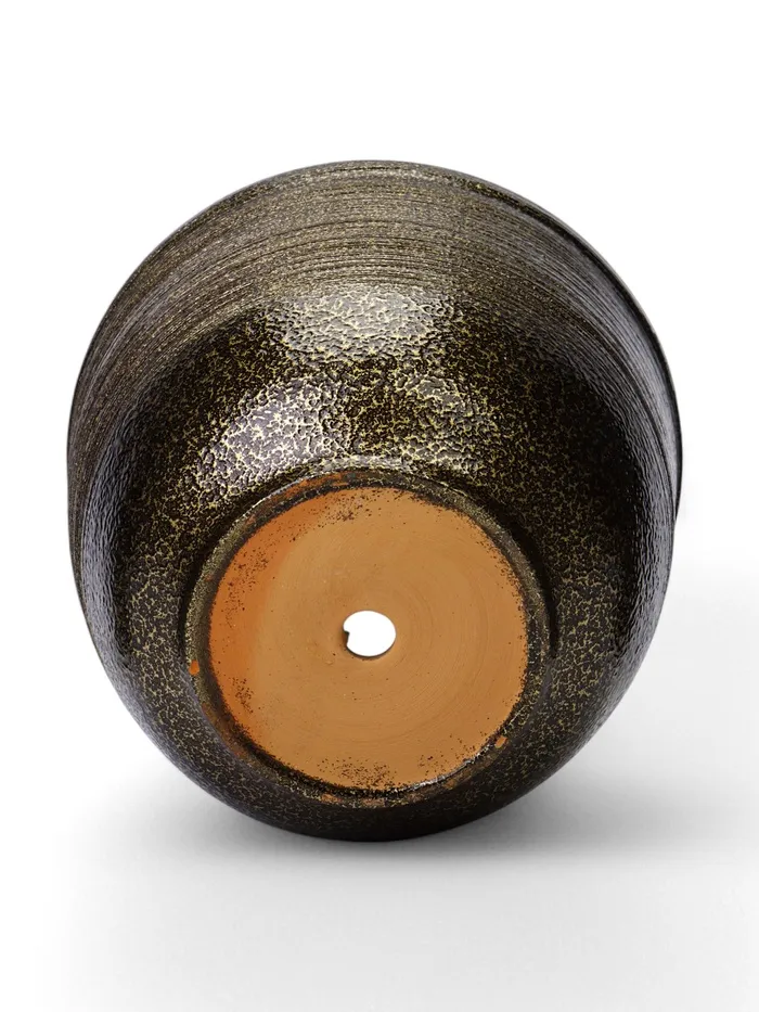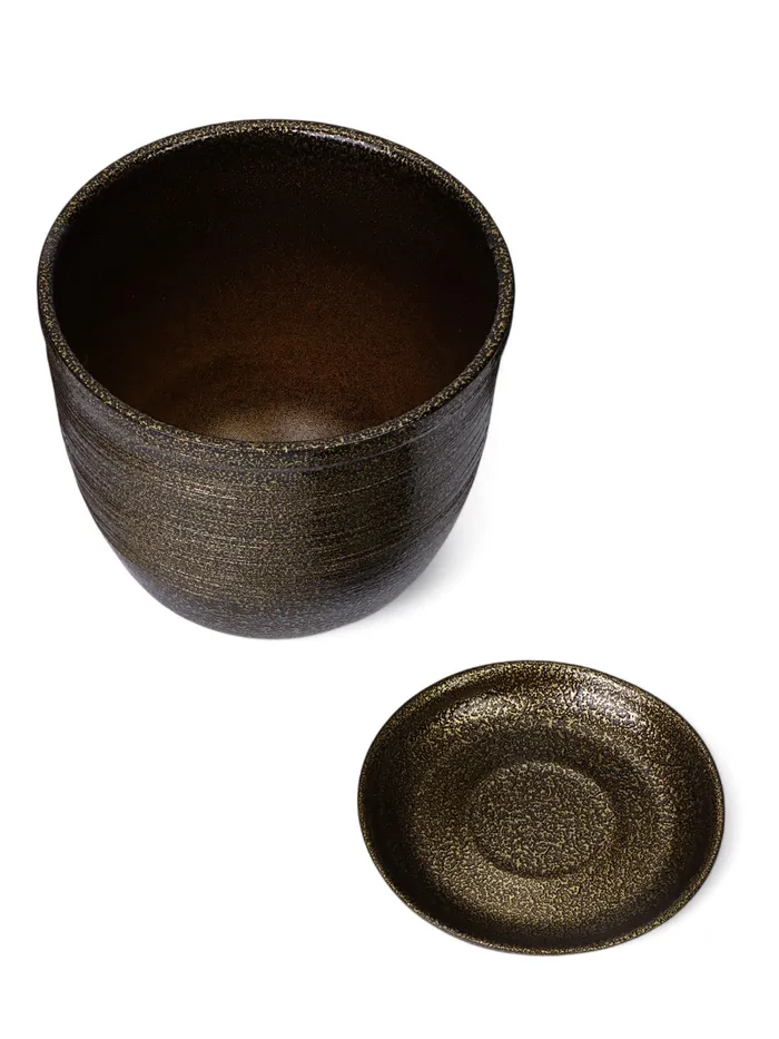 Горшок для цветов «Тёмное золото», керамический, с поддоном, 1.8 л, коричневый с золотой полосой — Характеристики