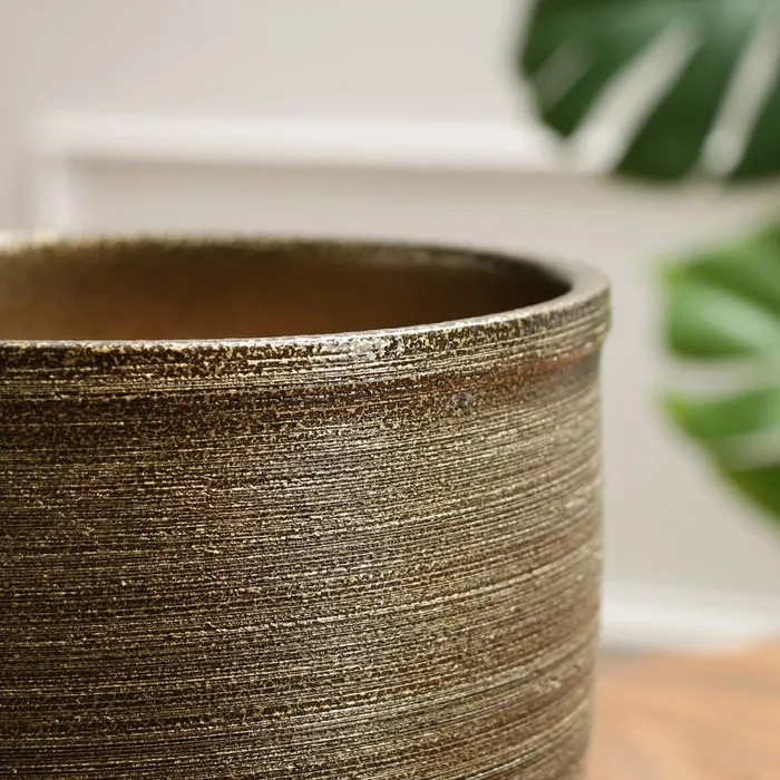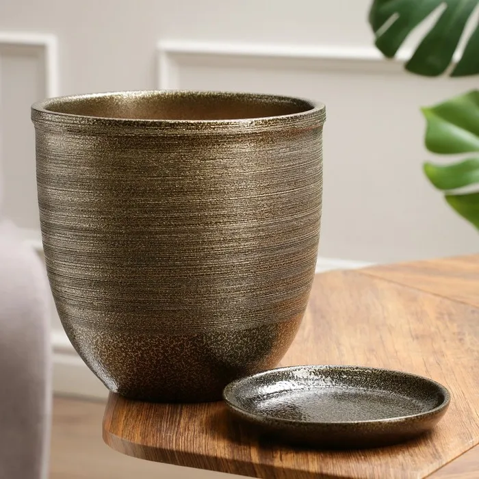 Горшок для цветов «Тёмное золото», керамический, с поддоном, 5 л, коричневый с золотой полосой — Характеристики