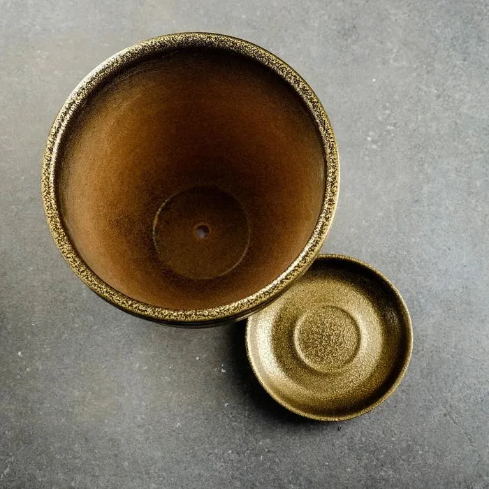 Горшок для цветов «Тёмное золото», керамический, с поддоном, 8 л, коричневый с золотой полосой — Характеристики