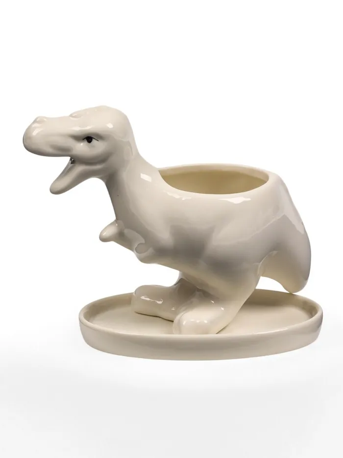 Горшок для цветов «Тирекс», керамический, 110 мл, 14×6.5×11 см, с поддоном, белый — Характеристики
