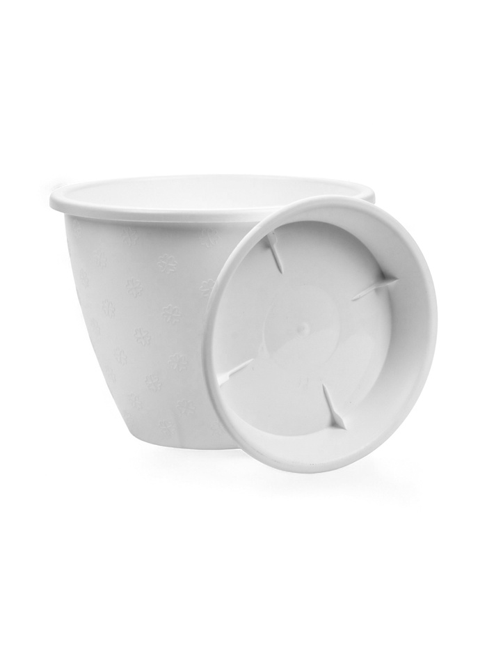 Белый пластиковый горшок с поддоном — просторная ёмкость для комнатных растений. Объём 3.6 л подходит для многолетних культур с развитой корневой системой.