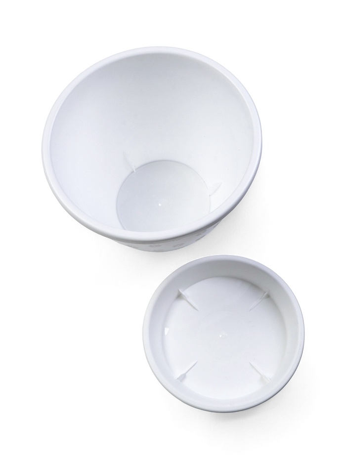 - Долговечность материала: плотный пластик сохраняет форму под весом грунта и растения. Белый цвет остаётся неизменным при долгом использовании.