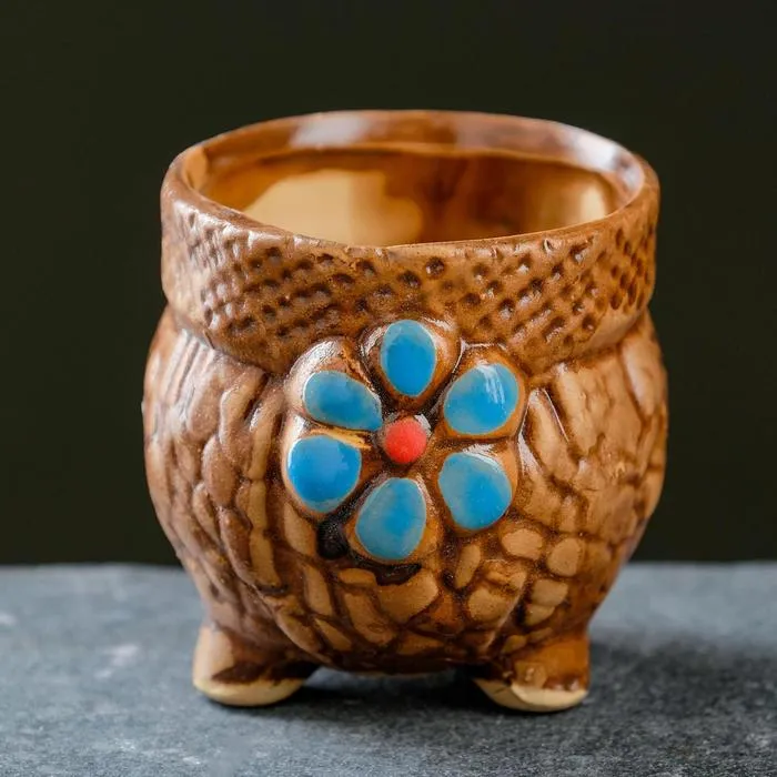 Горшок для цветов «Цветочек» керамический, 100 мл, 6×6×5 см, на ножках, коричневый — Характеристики