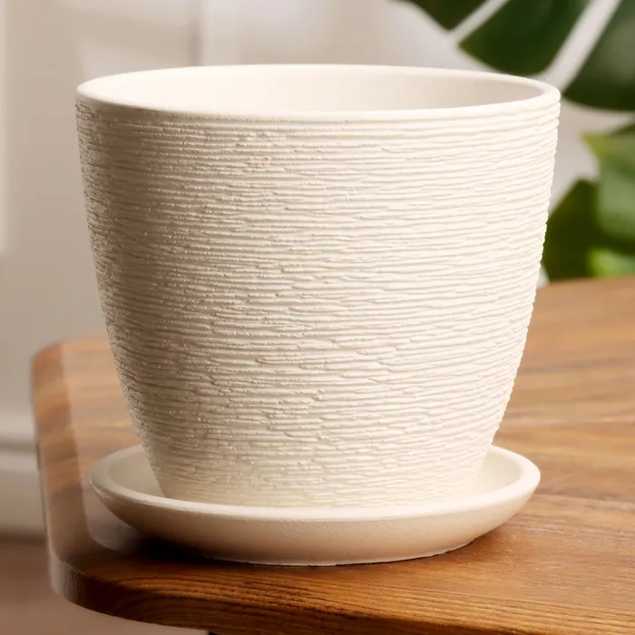 Функциональное решение: наличие дренажного отверстия и комплектного поддона упрощает регулярный уход. Горшок готов к использованию и станет стильным завершением образа на подоконнике, рабочем столе или открытой полке.