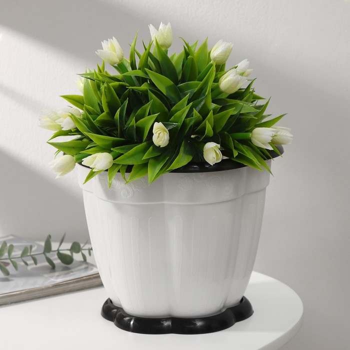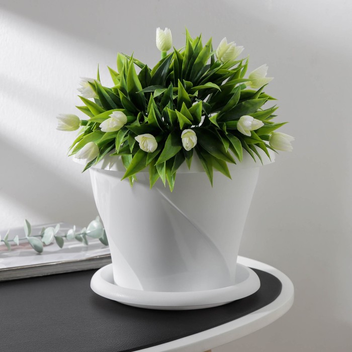 Практичность в деталях: наличие дренажного отверстия и комплектного поддона обеспечивает правильный уход за растением. Горшок готов к использованию и станет выразительным элементом композиции на столе или подоконнике.