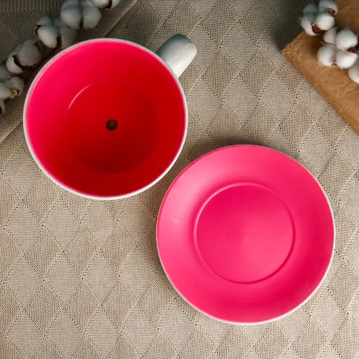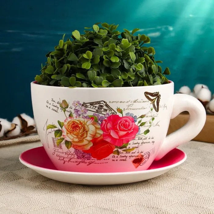 Горшок для цветов в форме чашки «Блум: розы» керамический, с поддоном, 2.2 л, 19×24×12 см, бело-розовый с рисунком — Характеристики