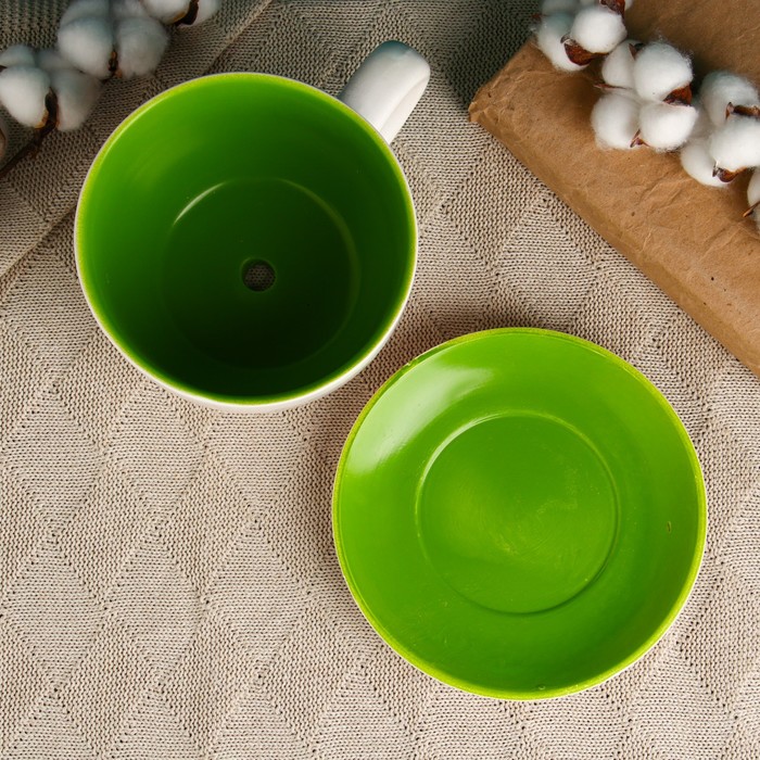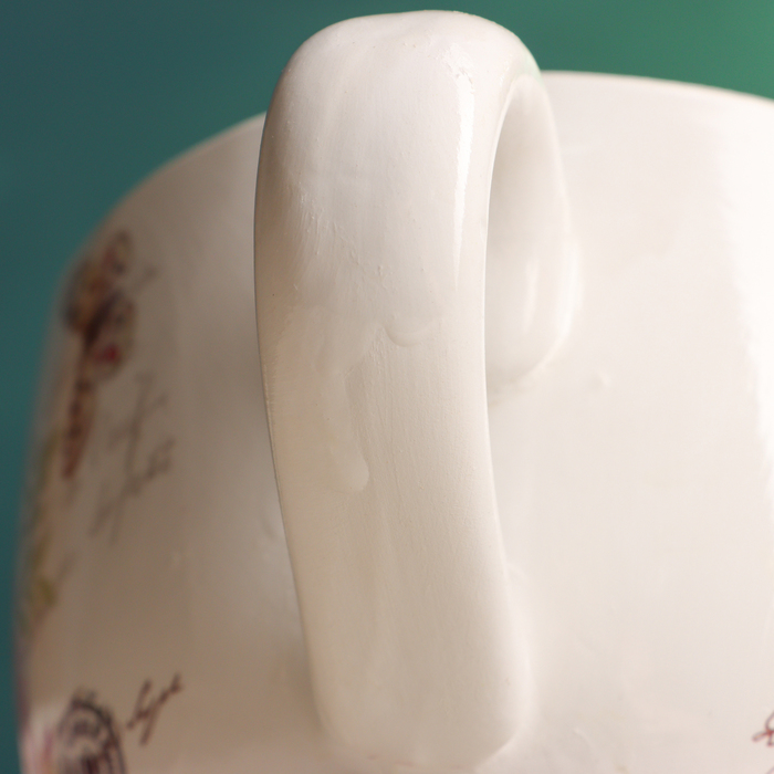 Горшок для цветов в форме чашки «Эмма: цветы» керамический, с поддоном, 1.3 л, 19×15×10 см, бело-зелёный с рисунком — Характеристики