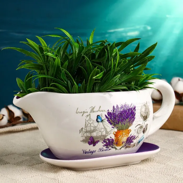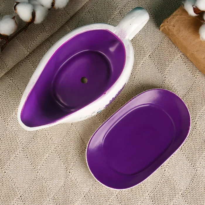 Горшок для цветов в форме кувшина «Агнес: лаванда» керамический, с поддоном, 1.1 л, 25×11×11 см, бело-фиолетовый — Характеристики
