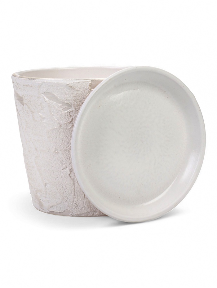 Керамический горшок «Венера» с поддоном, 2.6 л, белый — это настольная модель с абстрактной фактурой. Его чистый цвет и рельефная поверхность создают современный и выразительный образ для комнатных растений.