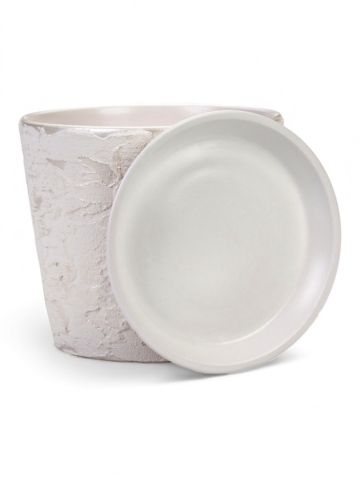 Керамический горшок «Венера» с поддоном, 4.75 л, белый — это настольная модель с абстрактной фактурой. Его чистый цвет и внушительный объём создают солидный и современный акцент для крупных комнатных растений.