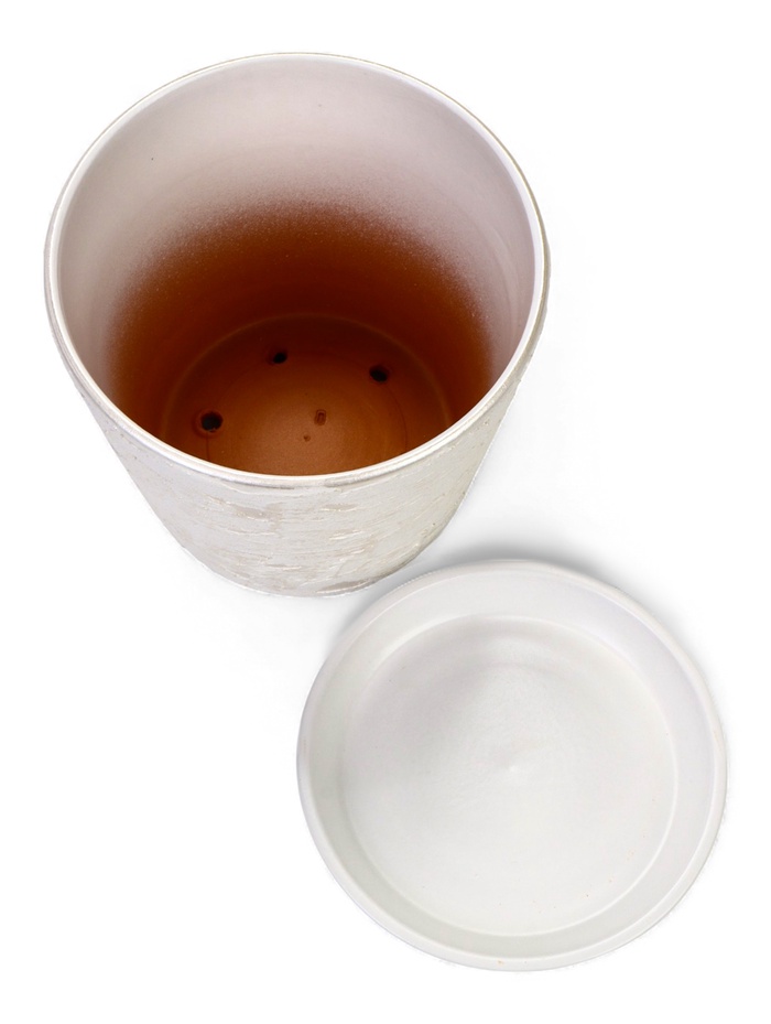 Практичность в деталях: наличие дренажного отверстия и комплектного поддона обеспечивает правильный уход. Горшок готов к использованию и станет солидным акцентом на широком подоконнике, полу или специальной подставке.