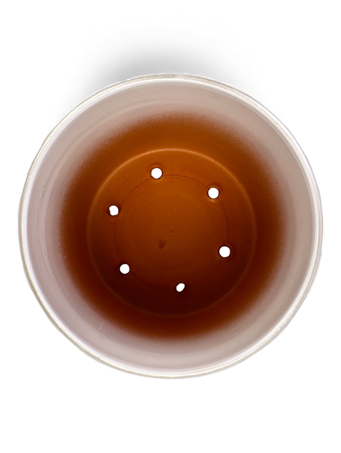 - Натуральная керамика: материал обеспечивает естественную вентиляцию почвы и придаёт горшку необходимую устойчивость.