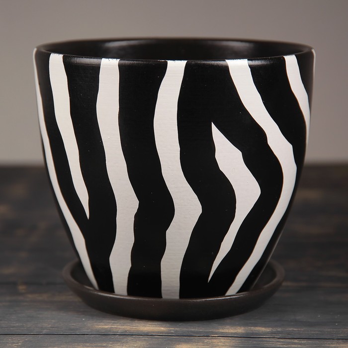 Горшок для цветов «Зебра», 500 мл, d=12 см, h=10 см, керамический, с поддоном, чёрный, белый — Характеристики