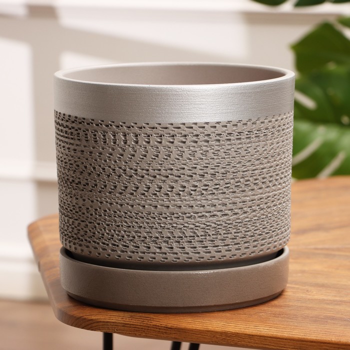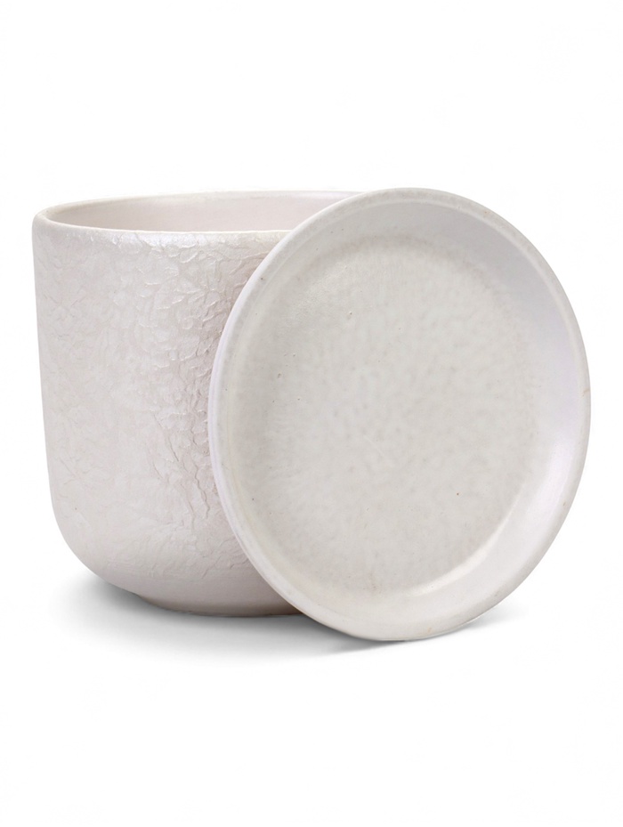 Керамический горшок «Жемчуг» с поддоном, 1.6 л, белый — это настольная модель с рельефной фактурой. Его светлый оттенок и текстурная поверхность создают игру света и добавляют интерьеру тактильную выразительность.
