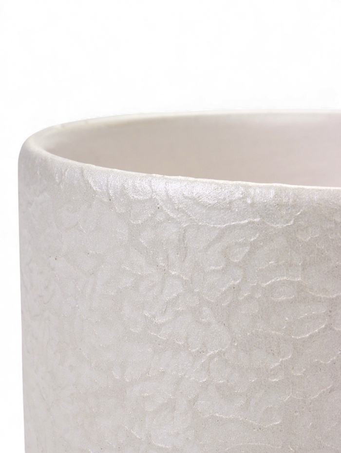 - Дизайн с объёмной фактурой: рельефная поверхность создаёт интересную игру света и тени. Эта деталь добавляет простой форме визуальную глубину и делает горшок выразительным акцентом в интерьере.