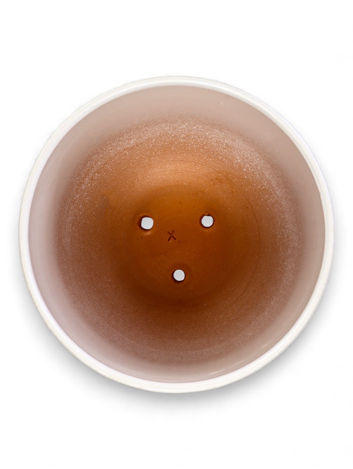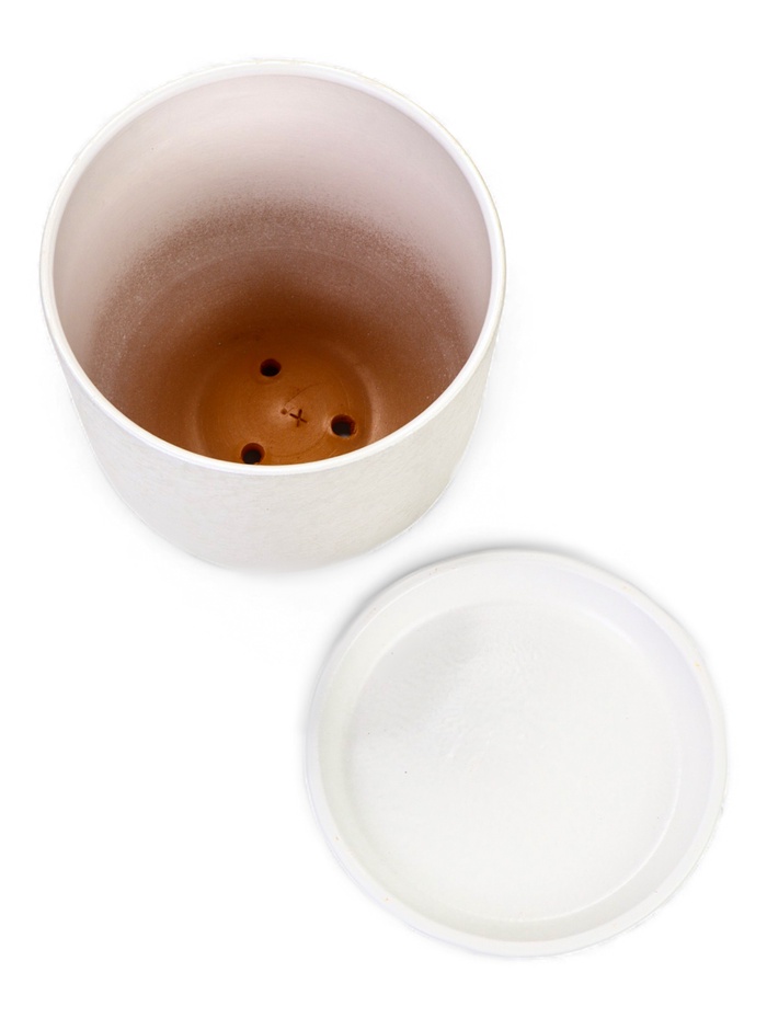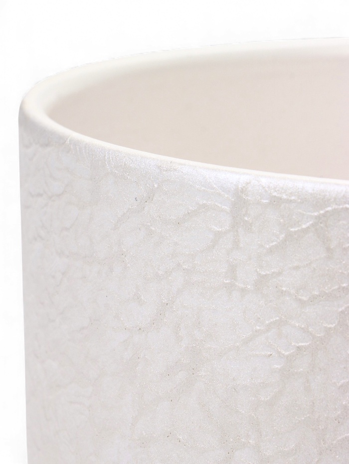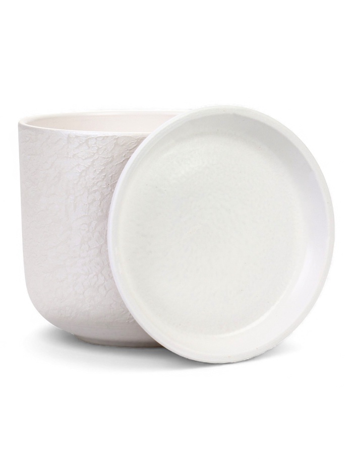 - Белый цвет с рельефом: чистый оттенок служит нейтральным фоном, а объёмная фактура создаёт игру света. Такое сочетание делает горшок самостоятельным декоративным элементом.