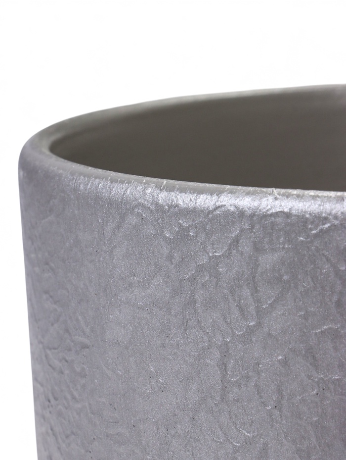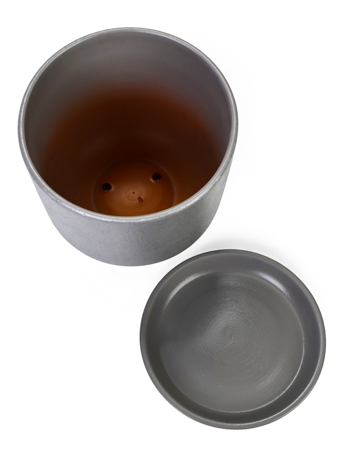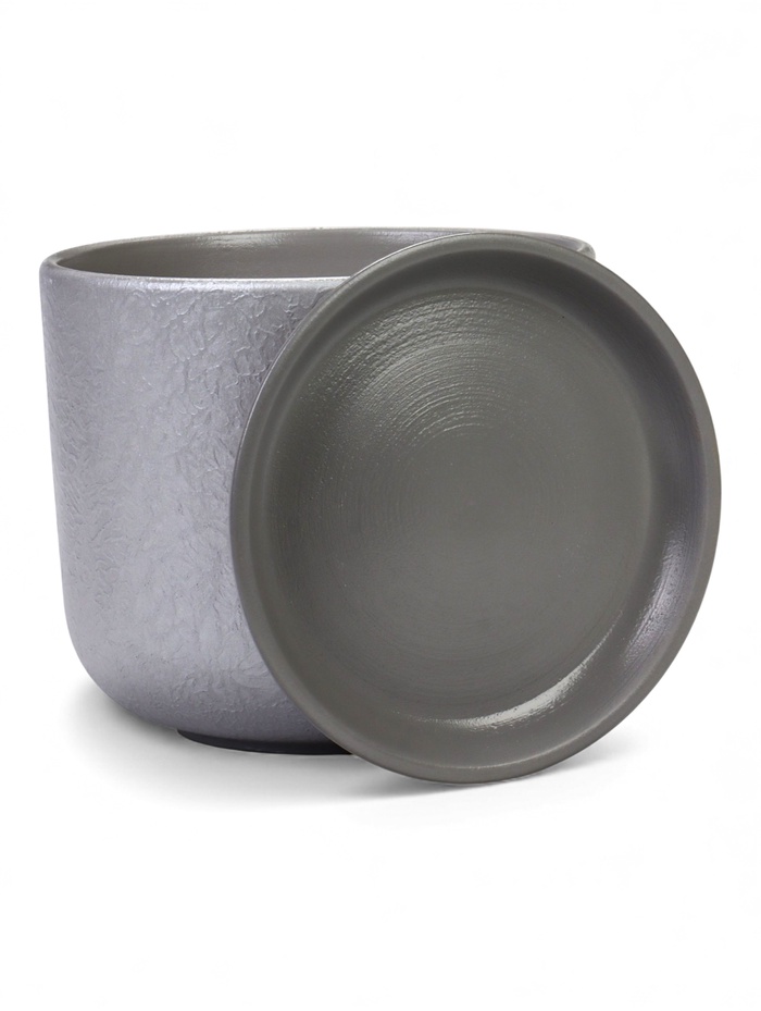 Керамический горшок «Жемчуг» с поддоном, 5.4 л, серый — это настольная модель с рельефной фактурой. Его холодный оттенок и большая вместимость создают строгий и современный акцент для крупных комнатных растений.