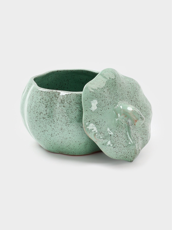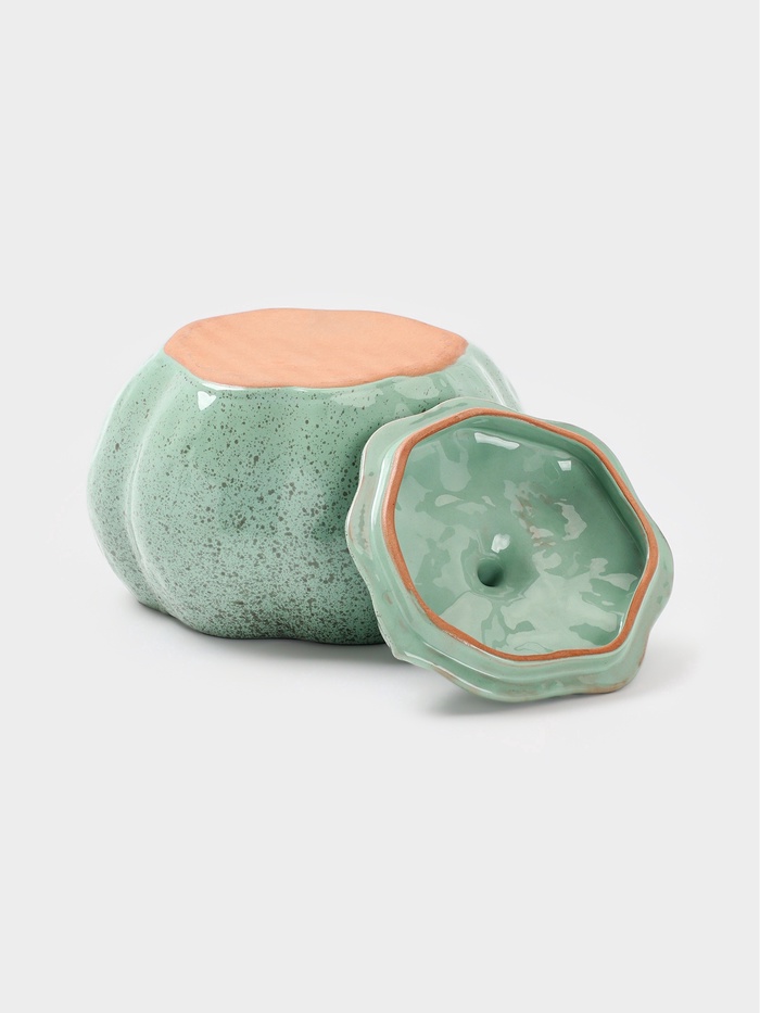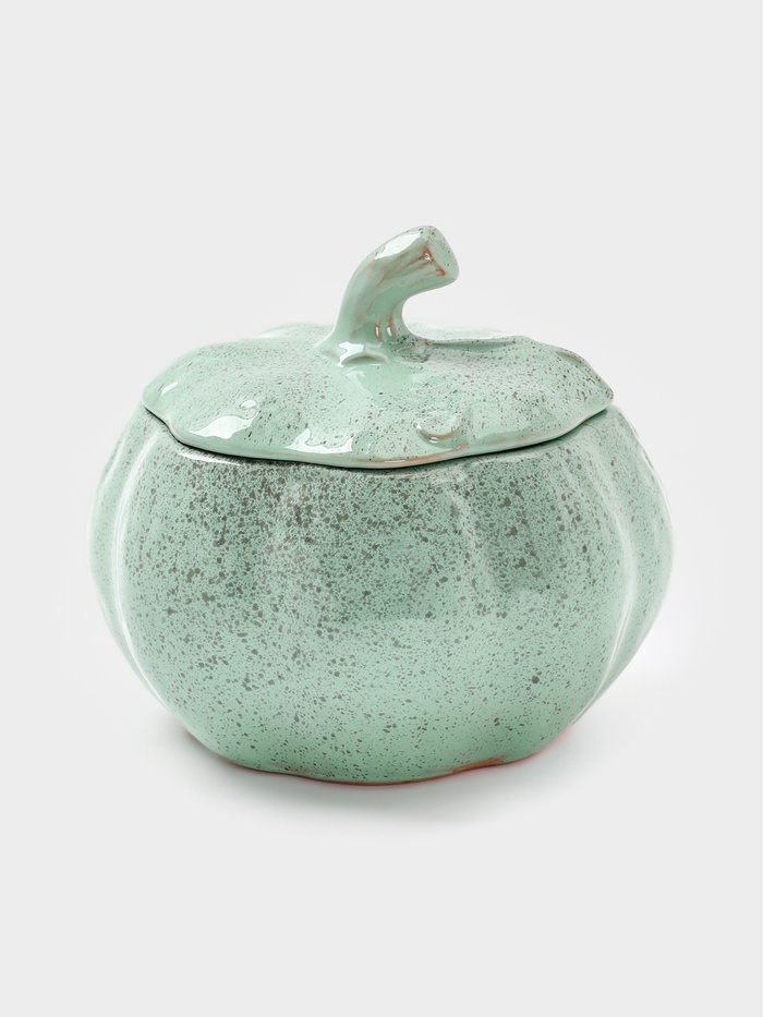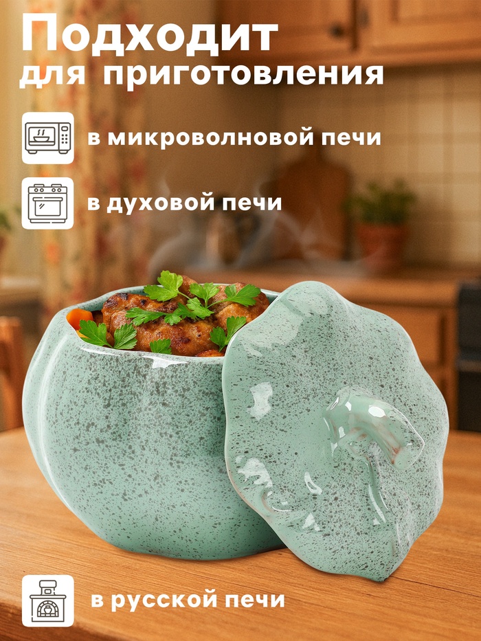Керамический горшочек в форме тыквы объёмом 0,6 литра — решение для тех, кто готовит с душой, даже когда блюдо рассчитано на одного. Его бирюзовая глазурованная поверхность мягко отражает свет, добавляя кухне свежести, а округлая форма и крышка создают миниатюрную печь для запекания овощей, яиц, кремов или порционных запеканок. Этот горшок не просто посуда — он приглашение к медленному приготовлению, когда аромат наполняет дом задолго до подачи.