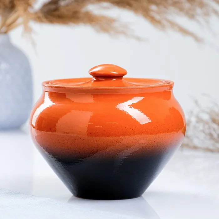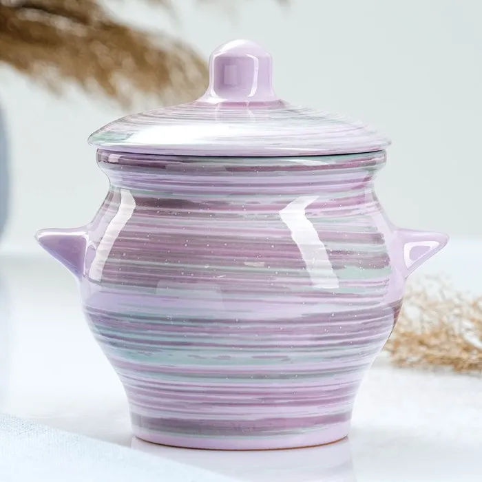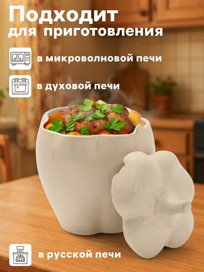 Бежевый цвет с естественными вариациями оттенков создаёт ощущение ручной работы. Форма горшка позволяет использовать его как сервировочную посуду, сохраняя тепло блюда во время подачи. Керамика постепенно отдаёт тепло, предотвращая резкое остывание. Горшок становится универсальным инструментом — от приготовления утренних запеканок до вечерних рагу с пролонгированным томлением.