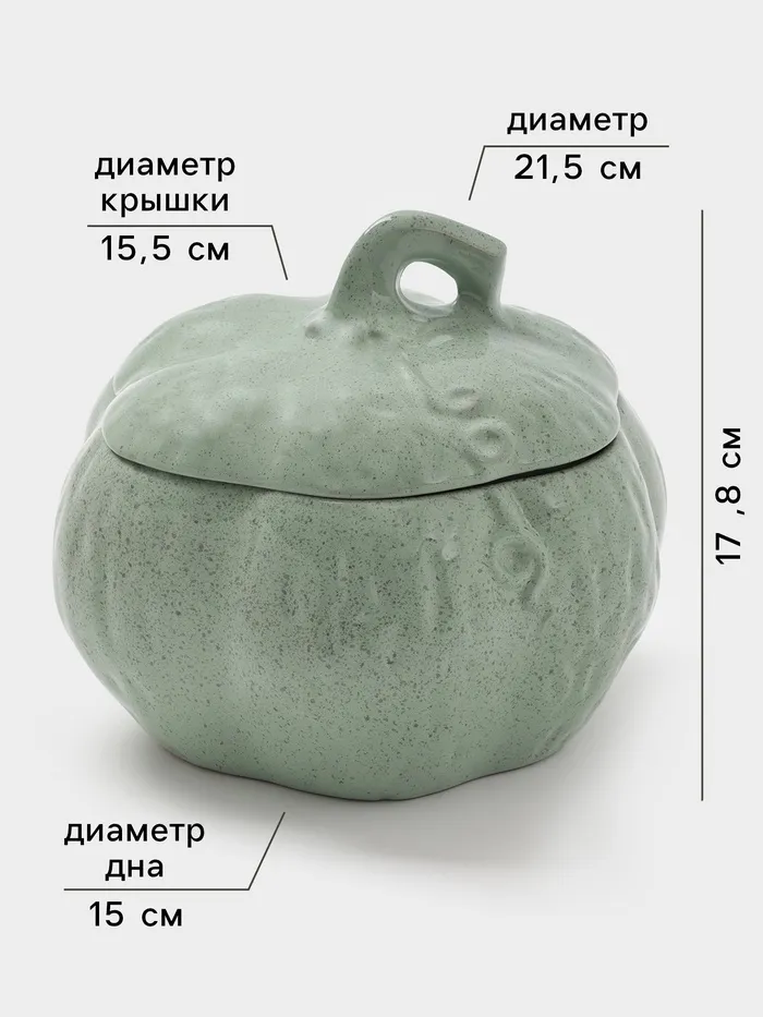 Горшок для запекания Борисовская керамика «Тыква», 2.5 л, зелёный — Характеристики
